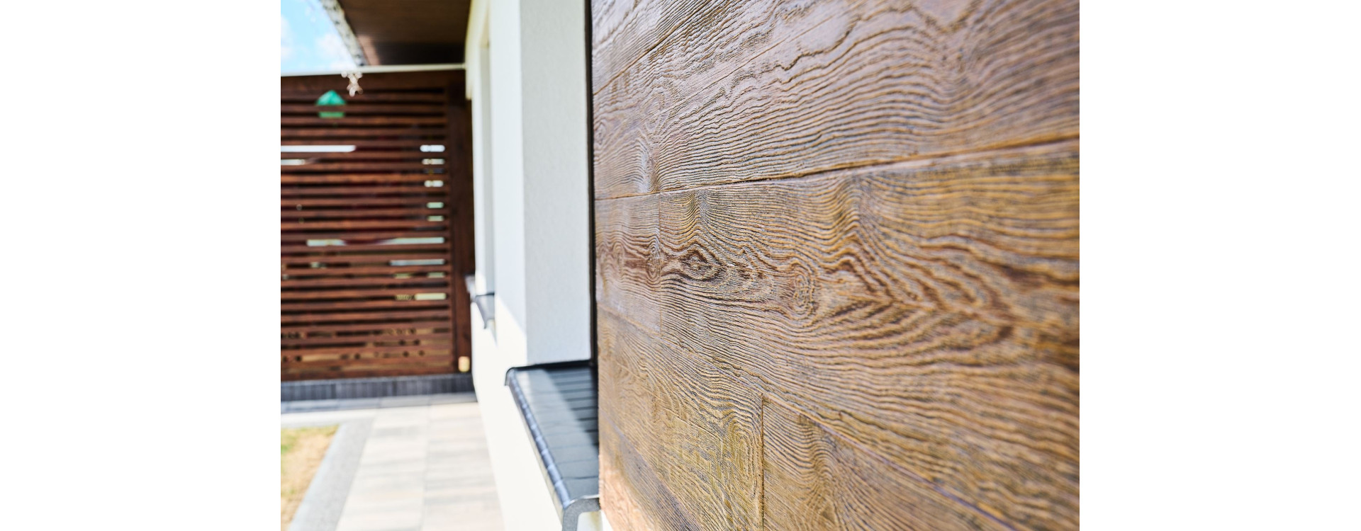 W produktach Elewacja Plus struktura drewna jest wytłoczona w twardej masie kwarcowej, co tworzy bardzo odporną warstwę wzmacniającą. Mycie pod ciśnieniem czy użycie szczotki nie jest w stanie zedrzeć tej faktury, co jest częstym problemem przy miękkich gatunkach drewna. Możesz cieszyć się czystą fasadą bez obaw o naruszenie spoistości mechanicznej wzoru drewna, który pozostanie wyraźny przez cały cykl życia produktu.
