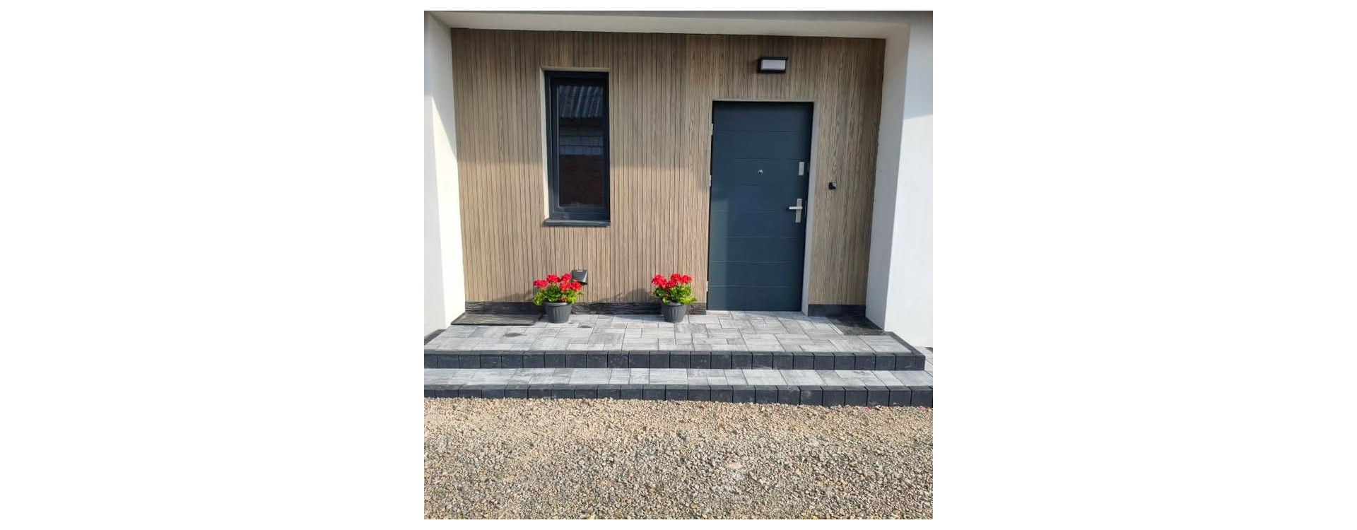 Najbardziej ponadczasowe połączenie to tynk w odcieniu „off-white” lub jasny popiel z ciemnymi lamelami w odcieniu antracytu lub ciepłego drewna (orzech, dąb).